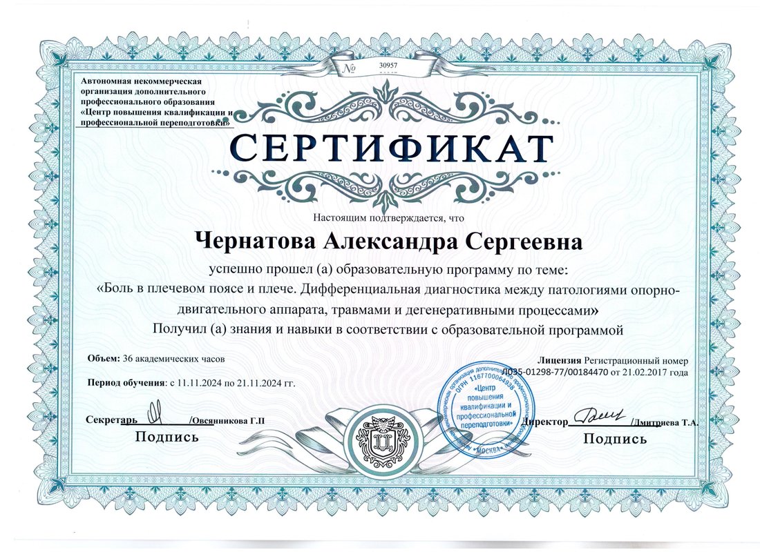 КЛИНИКА ОСТЕОПАТИИ доктора Назарова - это многопрофильное медицинское учреждение, предлагающее индивидуальный комплекс процедур для каждого клиента. Работа клиники организована с учетом комфортного пребывания посетителей. Новейшее оборудование центра помогает провести диагностику организма пациента для составления плана лечения и профилактики. В клинике функционируют отделения неврологии, акушерства, логопедии, ортопедии. Наши врачи имеют высокую квалификацию и внимательно отнесутся к каждой вашей просьбе. Доверяя свое лечение нам, вы можете не сомневаться в положительном результате.