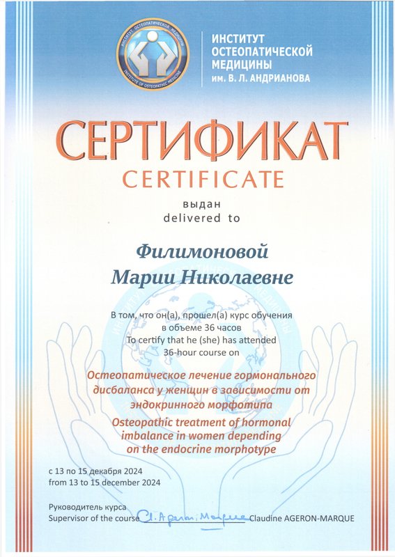 Гормональный дисбаланс, дисменорея, некоторые формы бесплодия, остеопатическая подготовка и сопровождение беременности, восстановление после родов.